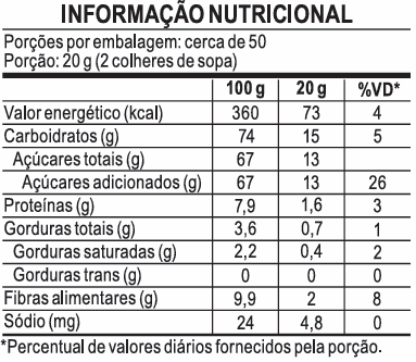 PODE CONTER LEITE, SOJA, AMENDOIM, AVELÃS, CASTANHA-DE-CAJU, AMÊNDOA, CASTANHA-DO-PARA, MACADÂMIAS, NOZES, PECÃS, PISTACHES, PINOLI, CASTANHAS, TRIGO, CENTEIO, CEVADA E AVEIA. CONTEM GLÚTEN.